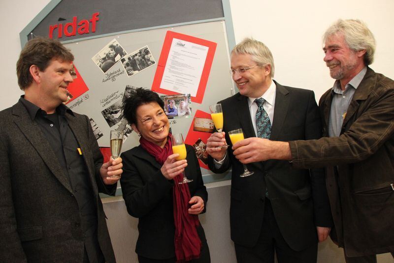 Ein Prost auf 30 Jahre Ridaf (von links): Geschäftsführer Axel Kerll, Sozialministerin Katrin Altpeter, Bürgermeister Robert Hahn und Vereinsvorsitzender Dr. Wolfgang Grulke.