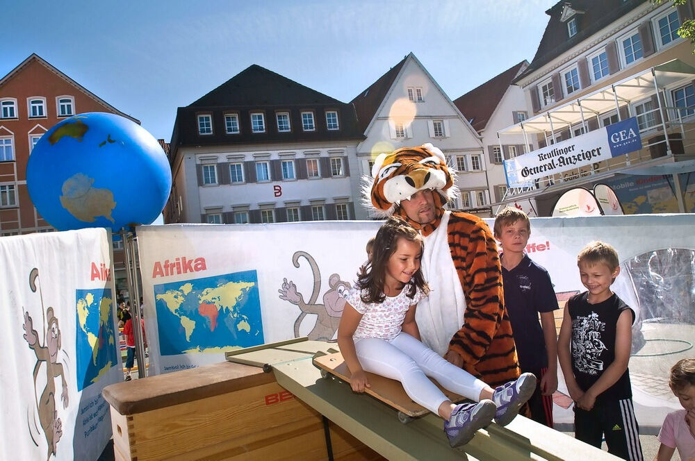 REUTLINGEN. Wie schnell sich der Reutlinger Marktplatz in einen Sportplatz verwandeln kann, konnten die Passanten in der Stadt gestern beobachten.
