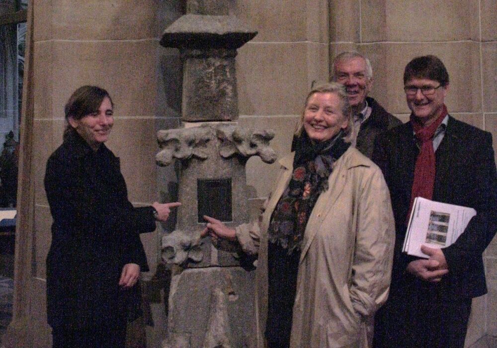 Präsentieren die Fiale im Eingangsbereich der Marienkirche (von links): Sandra Buck, Sabine Großhennig, Heinz-Peter Gerstenberg und Albert Hörz. GEA-FOTO: STEEN
