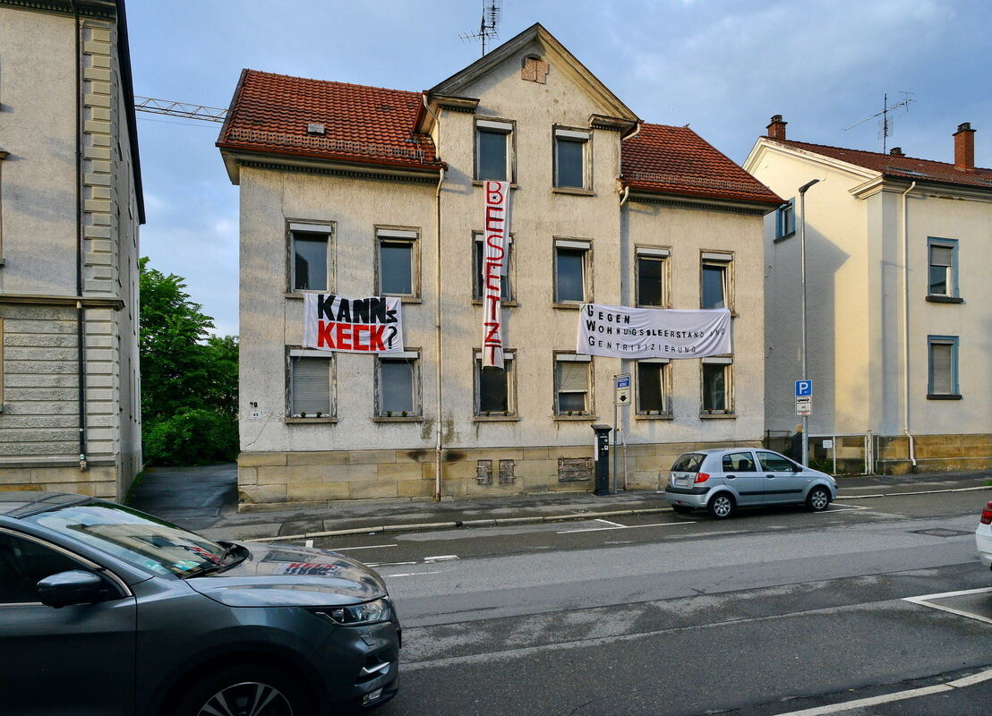 Das besetzte Haus in der Reutlinger Kaiserstraße 39 im Jahr 2021. Hier entstanden die Pläne für neue Wohnungen. Vier Jahre später ist das Haus längst nicht mehr besetzt und Oberbürgermeister Thomas Keck konnte die Frage auf dem Banner beantworten.