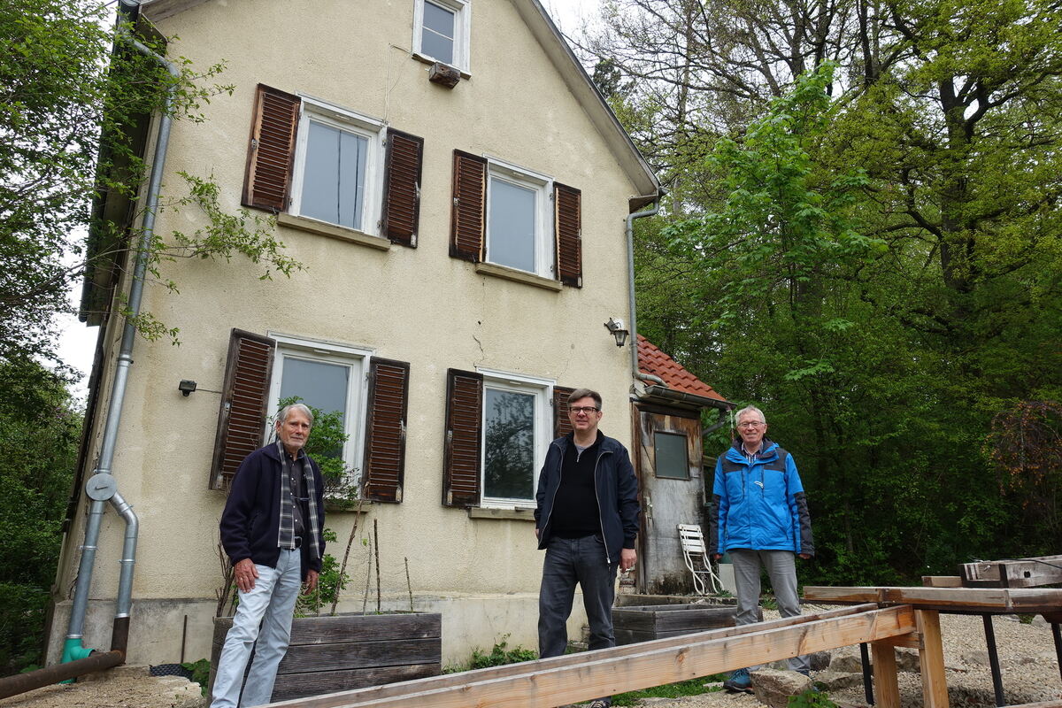 Helmut Treutlein, Martin Rosemann und Roland Herdtfelder (von rechts), Beiratsmitglied des Trägervereins und bis vor eineinhalb Jahren stellvertretender Vorsitzender, vor dem 100 Jahre alten Fachwerkgebäude. FOTO: DÖRR