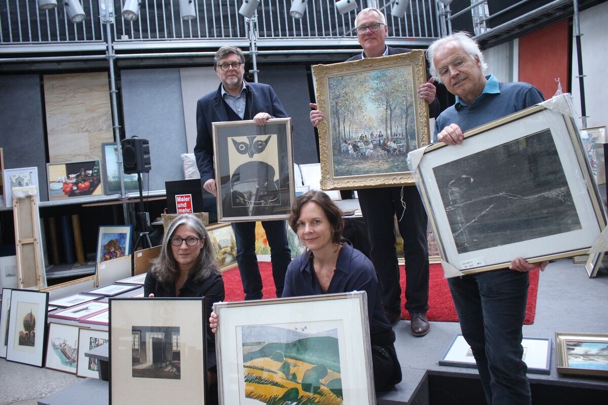 Die Juroren Sabine Lang, Wilfried Thron, Solveig Schneider, Eckard Reisch und Dr. Werner Ströbele (von links) haben rund 280 Kunstwerke für die Benefizaktion taxiert. FOTO: SPIESS