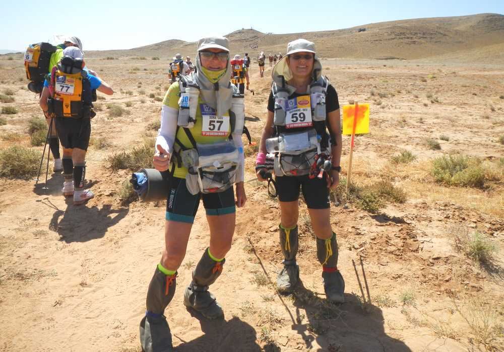 In sengender Hitze durch den Wüstensand: Gabi Meretz (links) und Marianne Topolski beim »Marathon des Sables«. FOTO: PR