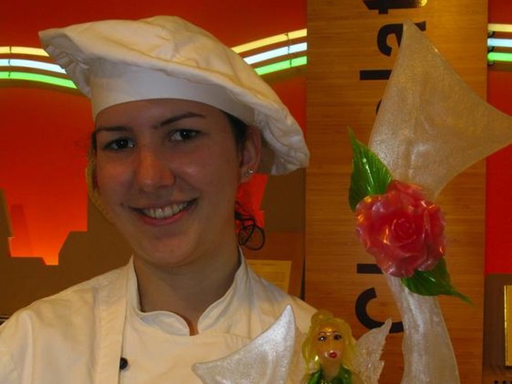 Landessiegerin Sandra Luz mit ihrem Schaustück aus Zucker. FOTO: CHATZINIKOLAOU