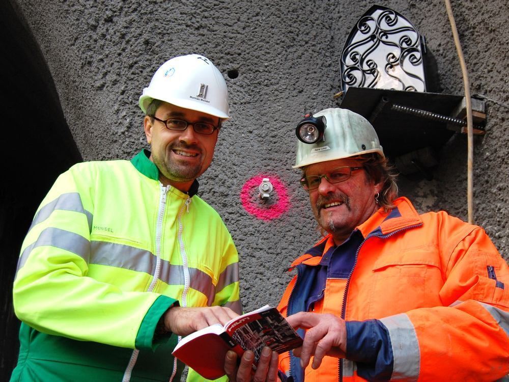 Unter dem Schrein der »Heiligen Barbara«: Projektleiter Mathias Mondel (links) und Chefmineur René Limbl.