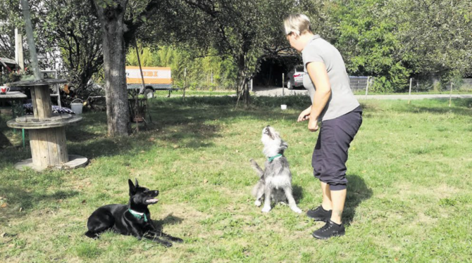Täglich übt Hundetrainerin Monika Massnik mit Hündin Mia und dem schwarzen Rüden Sticht.