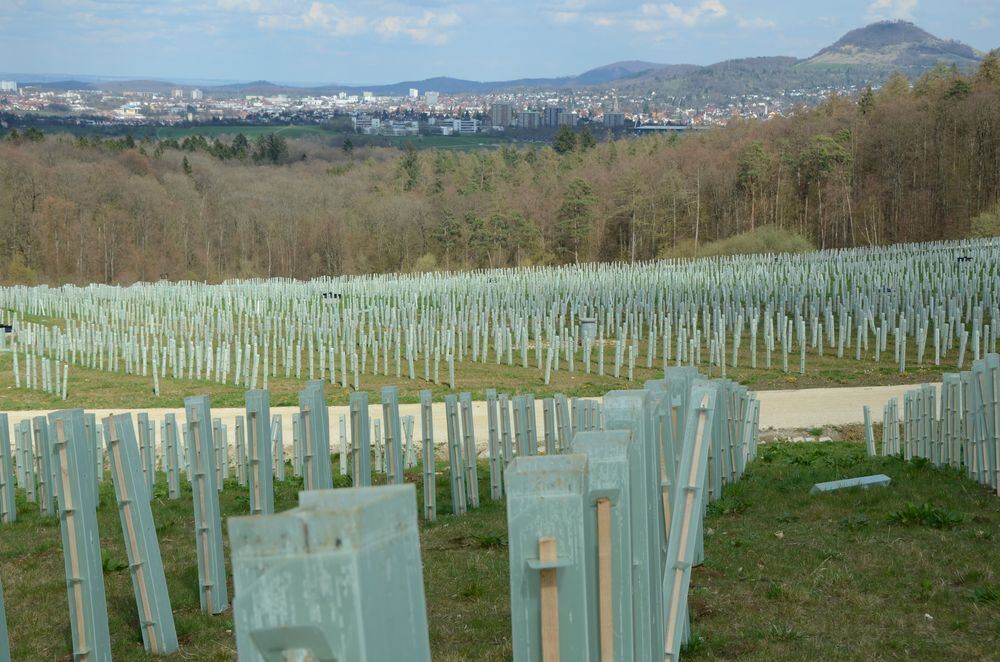 In Sichtweite zum Hohbuch (rechts die Achalm) liegt die ehemalige Mülldeponie, die jetzt rekultiviert und bepflanzt wurde. GEA-FOTO: CONZELMANN