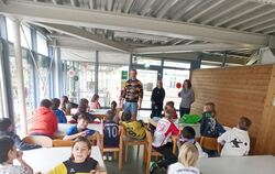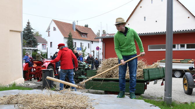 Wem der Sinn eher nach traditioneller landwirtschaftlicher Handarbeit steht, wird von einem jungen Betzinger gerne dazu angeleitet. Tim Zössmayr führt praktisch vor, wie einstmals mit dem Dreschflegel den Ähren ihre Körner entlockt worden sind. »Der Stiel vom Dreschflegel muss sich drehen können, und das Kopfholz in einer Linie mit dem Stiel schlagen«, erklärt er das Geheimnis. Wer’s ausprobiert, merkt schnell: Es ist schwieriger getan als gesagt. (zen)