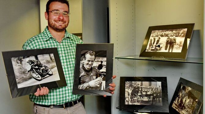 REUTLNGEN-BETZINGEN. »Rennfahren ist wie ein großes Fressen, wie wenn du Hunger hast und es gibt ein wunderbares Mahl.« Ein Satz von Hans Baltisberger, Motorradrennfahrer aus Betzingen. Heute vor 60 Jahren bezahlte er seinen Hunger mit dem Tod: Beim Großen Preis im tschechischen Brünn trug es ihn mit 200 Sachen aus der Kurve, er prallte gegen eine Baum und starb. Anlässlich seines Todestags erinnert der Betzinger Albverein mit einer Foto-Ausstellung im Museum »Im Dorf« an die Motorrad-Rennlegende.