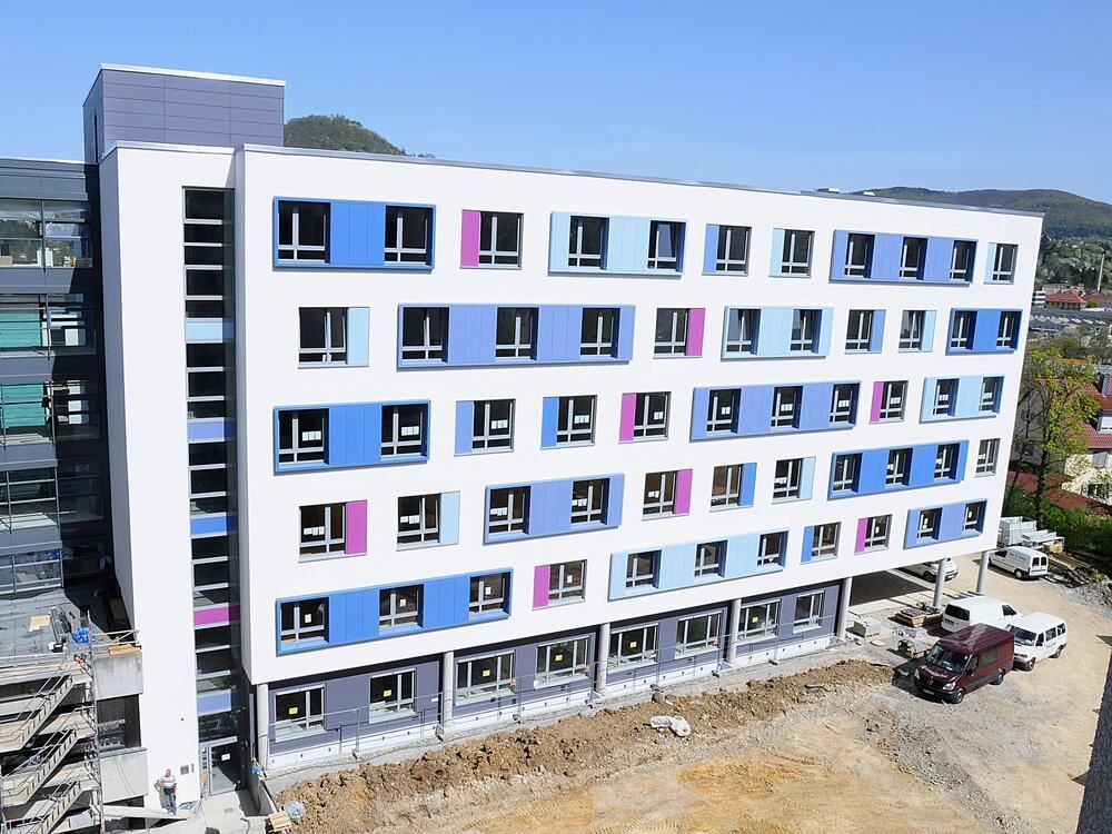 Das neue Bettenhaus Süd (B) mit seiner wärmegedämmten Fassade.