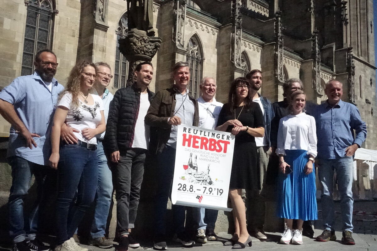 Freuen sich auf die 34. Auflage des Reutlinger Herbstes (von links): Uwe Grauer vom Joli, Marie-Luise und Gerhard Gumpper vom Forellenhof Rössle, Tim und Dieter Wetzel vom Hotel-Restaurant Schwanen in Metzingen, Josef Klose vom Hotel-Restaurant Stausee in Glems, Regine und Carlo Vohrer von der Weinagentur Julius Vohrer, Heiner Engelhardt vom Wanderheim Die Hütte Eninger Weide sowie Anja und Andreas Sommer vom Café Sommer in der Wilhelmstraße. FOTO: DÖRR