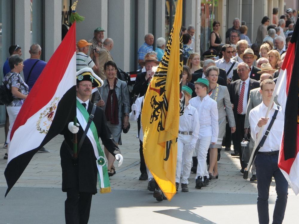 Honoratioren ziehen von der Marienkirche zum Schwörhof beim Friedrich-List-Gymnasium.