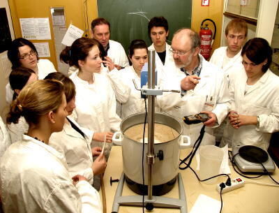 Einmaischen wird die Malzzugabe ins erwärmte Brauwasser genannt. Die Laura-Schradin-Schülerinnen wissen, dass es dabei auf penible Sauberkeit ankommt.