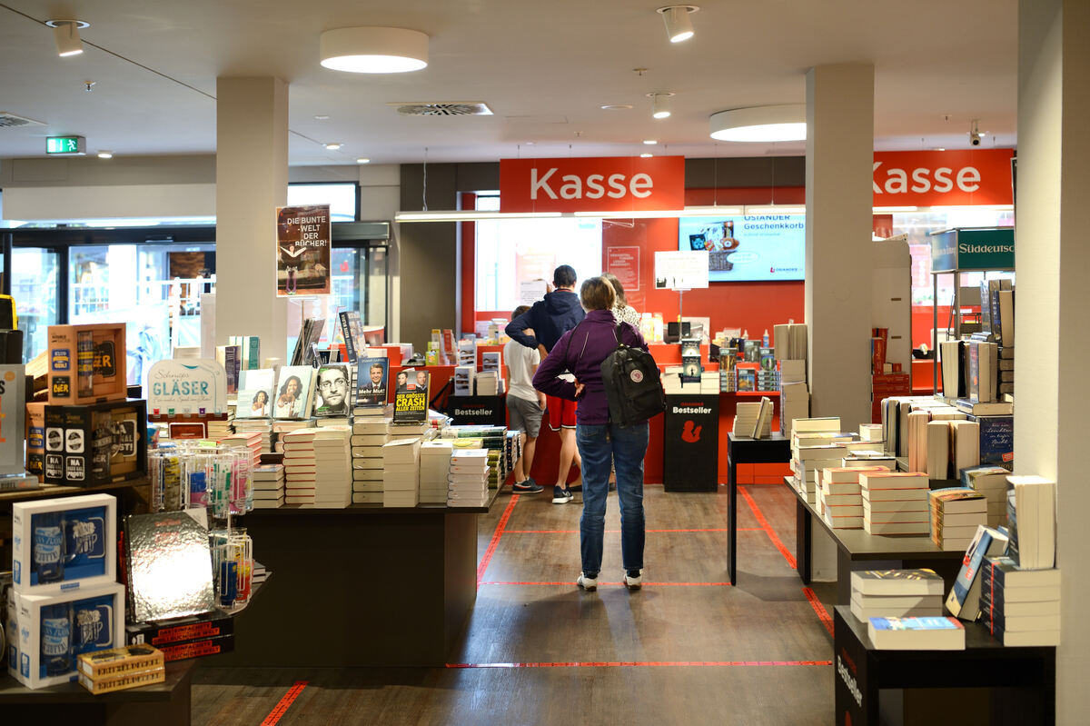 In der Reutlinger Buchhandlung Osiander standen die Kunden teils Schlange. Tim Würz, Inhaber des Ladens Himmelbrett, präsentiert die Umsetzung der neuen Richtlinien. FOTOS: PIETH