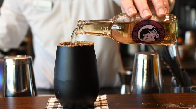 So elegant sieht »Auffüllen mit Ginger Ale« an der Bar des Achalm Hotel aus.