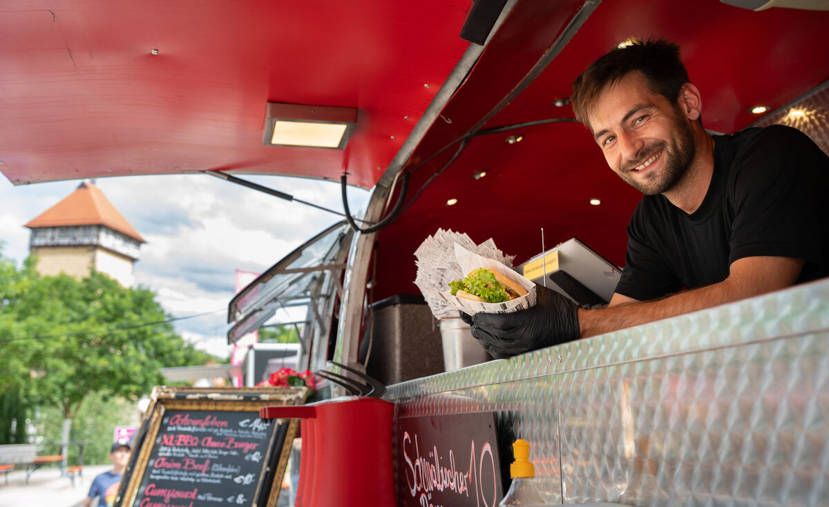 Ob schwäbischer Döner, spanische Paella, griechische Souvlaki oder Kartoffelspalten: Das Angebot ist vielfältig und international. Für das passende Ambiente sorgt die stimmungsvolle Beleuchtung.