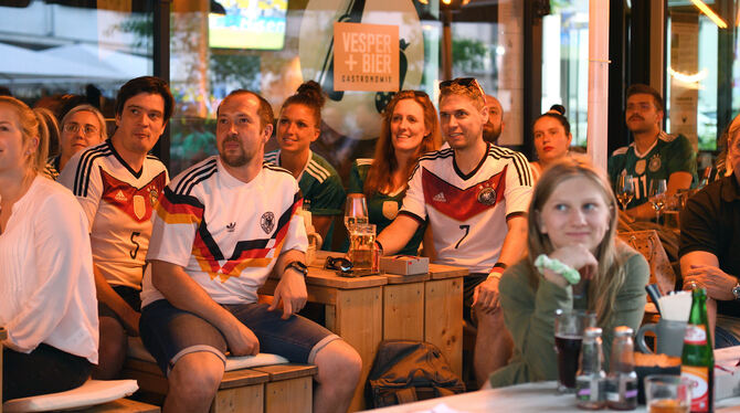 REUTLINGEN. Richtiges EM-Fußballfieber wollte bei vielen Menschen in Reutlingen in Corona-Zeiten bislang nicht so richtig aufkommen, doch an manchen Orten der Stadt war es zum Auftaktspiel der deutschen Nationalelf gegen Frankreich doch wenigstens ein bisschen zu spüren. Zwar gibt es in der Pandemie keine öffentlichen Public-Viewing-Veranstaltungen wie bei großen internationalen Fußballturnieren in der Vergangenheit, aber mitfiebern im Freien an einem so lauen Sommerabend war hier und da doch möglich.