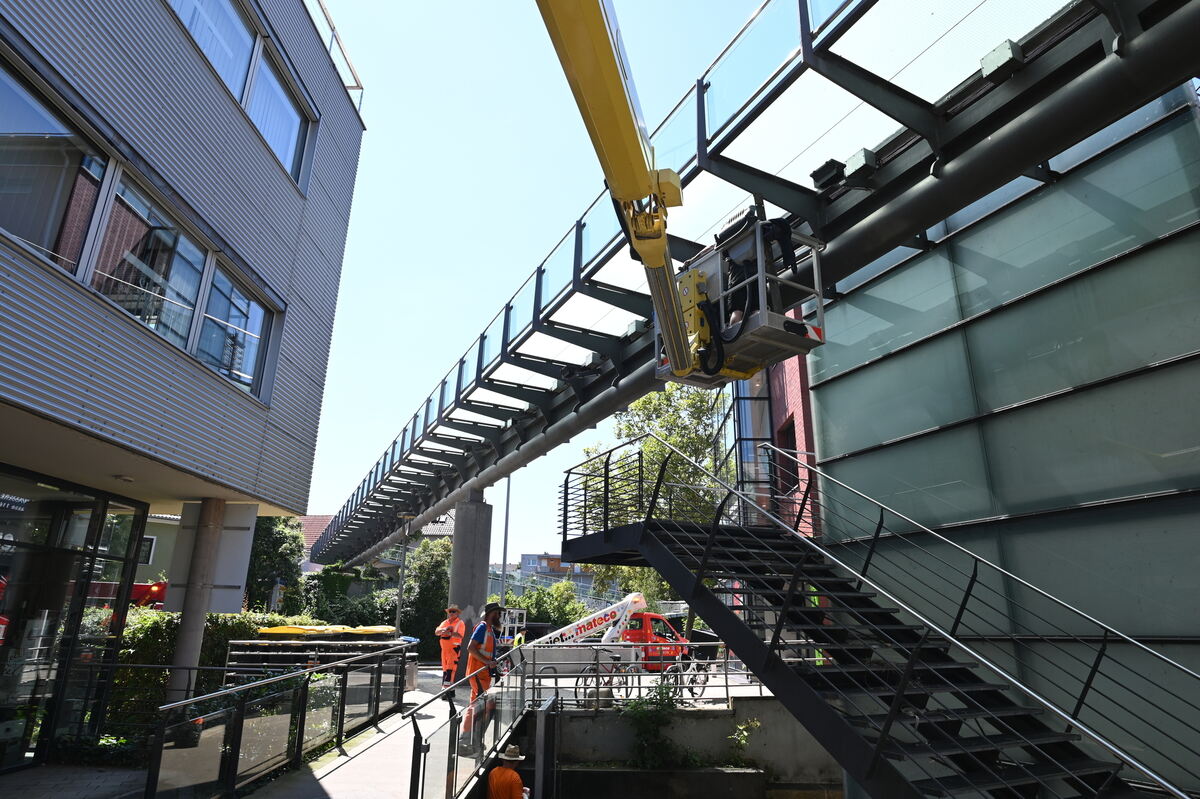 So wird die gläserne Brücke über die Reutlinger Lederstraße gepflegt