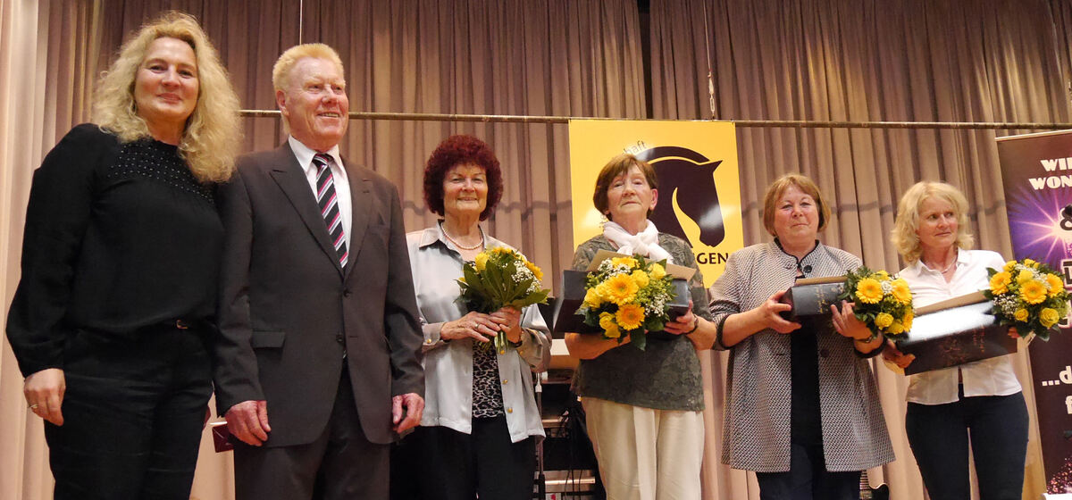 Sportvereine als wertvolle Pfeiler der Gesellschaft stünden angesichts der zunehmenden Individualisierung vor großen Herausforderungen, erklärte OB Keck. »Doch die Sondelfinger Reiterkameradschaft wurde all die Jahre mit viel Weitblick geführt, und ich drücke Ihnen die Daumen, dass das auch in Zukunft gelingt.« Neben den »Offiziellen« konnte Claudia König zahlreiche Mitglieder befreundeter Reitvereine als Gäste begrüßen, ehemalige Reitlehrer, Voltigiertrainer und sonstige Weggefährten, wie den langjährigen Parcoursbauer Walter Holzapfel oder Georg Tröster, den Hufschmied der RKS. Zudem konnte sie besonders treue Vereinsmitglieder ehren. Heike Tschepella, Ulrich Bayer, Gabriele Schattmeier-Gampe, Hannelore und Dieter Remus sowie Heidi Moritz gehören der RKS seit vierzig Jahren an, Lore Schick, als Gründungsmitglied, sogar seit fünfzig Jahren. Wovon sie dem Verein 25 Jahre lang, auch in schwierigen Zeiten, als Kassiererin gedient hat.