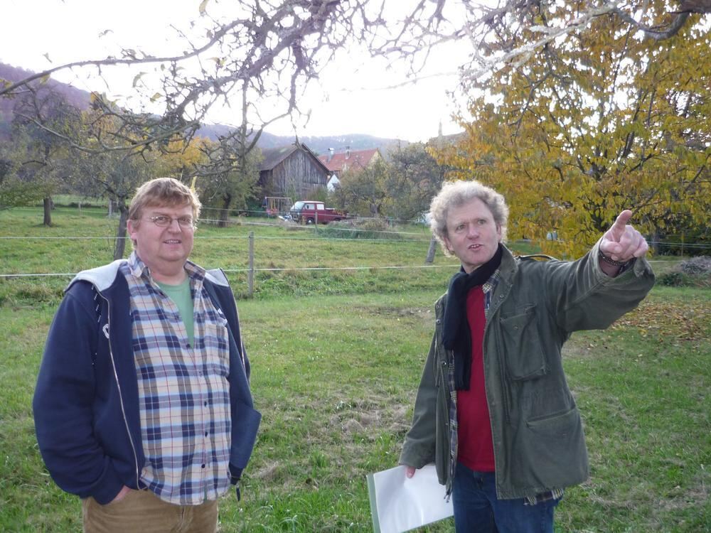 »Hinter Höfen«: Bis jetzt herrscht noch Idylle hinterm Gönninger Friedhof. Doch Bernd Holwein (links) und Ralf Rieker befürchten, dass das nicht so bleibt.
