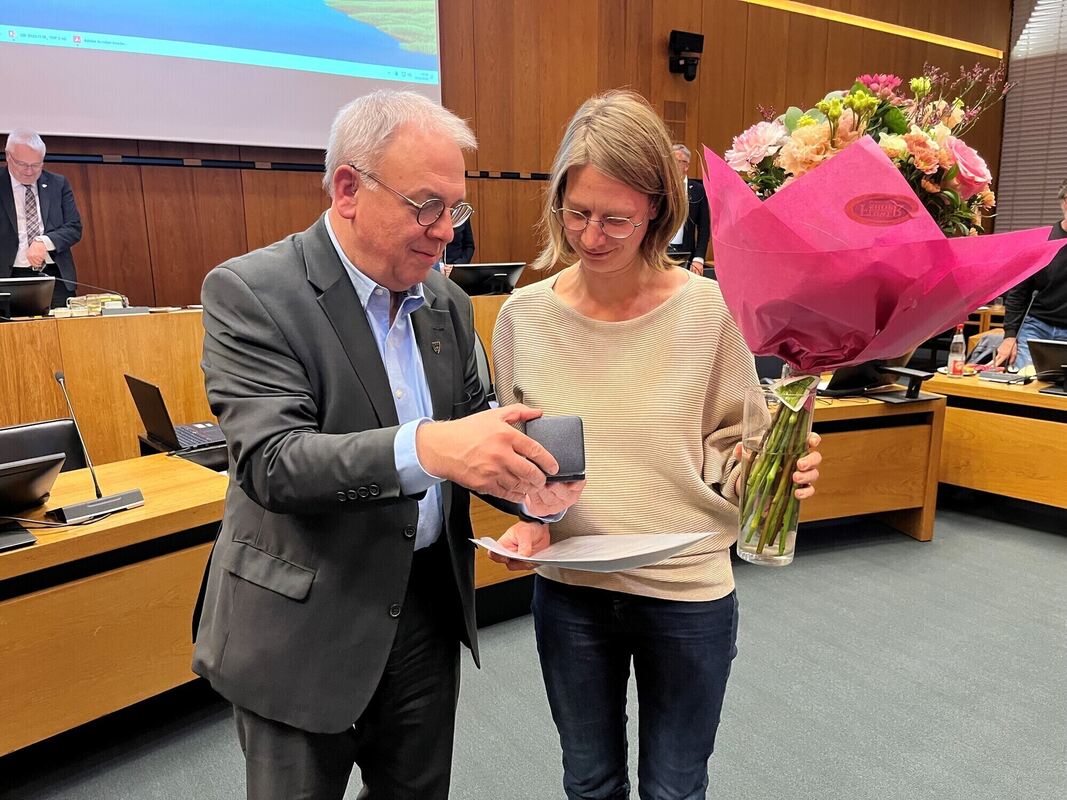 Bayer zeigte sich gerührt: »Ich hab gelernt, dass in unserer Gesellschaft vor allem eins zählt: Leistung. Jetzt hab ich aber auch gelernt, dass ebenso Selbstfürsorge dazugehört.« Sie dankte ihren Fraktionskollegen für den Rückhalt, den sie als junge Mutter erfahren hatte. Außerdem appellierte sie an die restlichen Räte: »Wir demokratischen Fraktionen werden verlieren, wenn wir nicht zusammenhalten. Ich bin dankbar für jeden Moment, in dem ein Kompromiss möglich war in diesem Gemeinderat.« Als ihr Nachfolger wurde Andreas Linsmeier verpflichtet. (GEA)