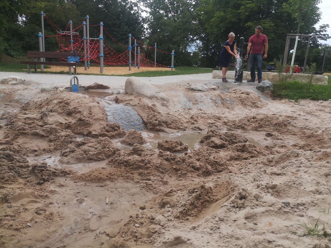 Gänzlich natürlich geht’s freilich im künstlichen Bachlauf zu, der von einer Spielplatzpumpe in den Leyrenbach führt. Es gibt diverse Granitpflaster, einen Matschbereich und viel Sand, in dem die Kinder nach Herzenslust spielen können. Der Platz ist von der Stauffenbergstraße in zwei Eingängen zugänglich. (co)