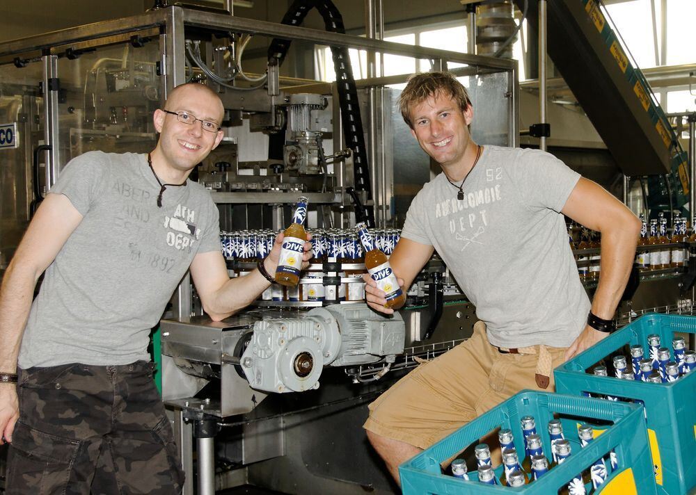 Sebastian Werner (rechts) und Alex Baumhauer haben viel Energie in die Vermarktung ihres selbst erfundenen Engergydrinks gesteckt. FOTO: PR