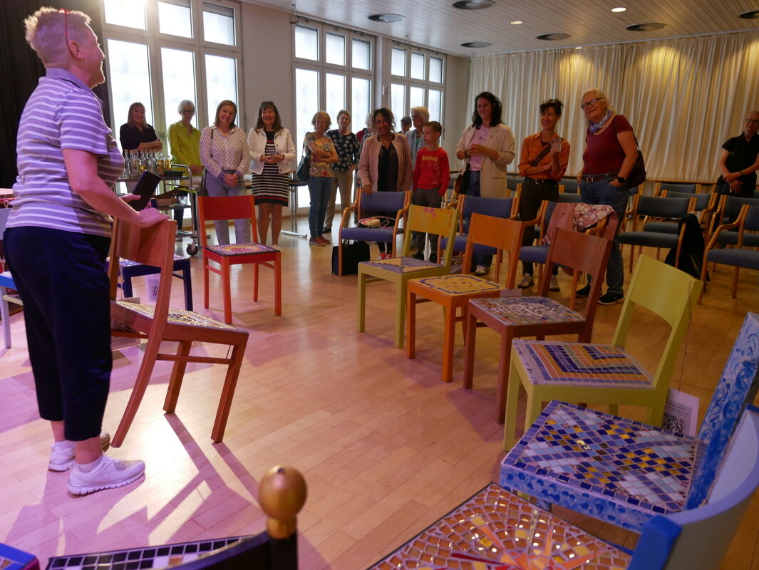 Angeleitet worden sind die Stuhlgestalter von der Künstlerin Susanne Immer und Susanne Stutzmann an vier Wochenenden in den vergangenen Monaten – und somit wurde den alten Stühlen aus der Christuskirche in der Tübinger Vorstadt ein ganz neues Leben eingehaucht.