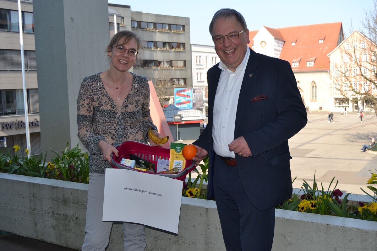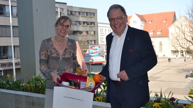Die Stadt koordiniert Einkaufshilfen: Anke Bächtiger von der Stabsstelle Bürgerengagement mit OB Thomas Keck. FOTO: STADT