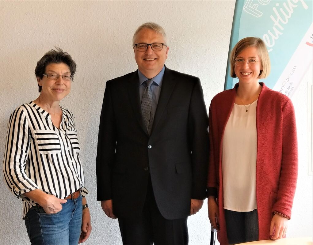 Susanne Stützmann (links) vom Familienforum, Bürgermeister Robert Hahn und Projektleiterin Annemarie Graf-van Kesteren stellten die Fragebogenaktion vor. FOTO: BÖHM