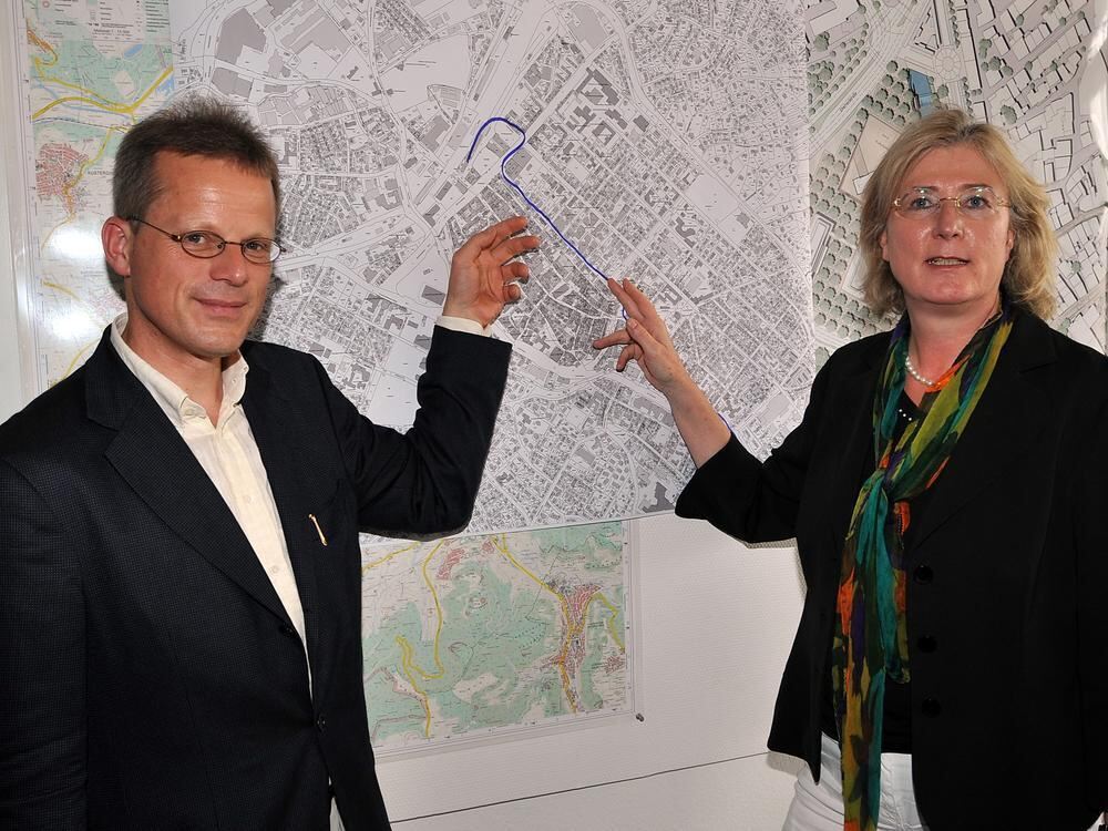 Baubürgermeisterin Ulrike Hotz mit dem neuen Stadtbahnplaner Wolf Drechsel.