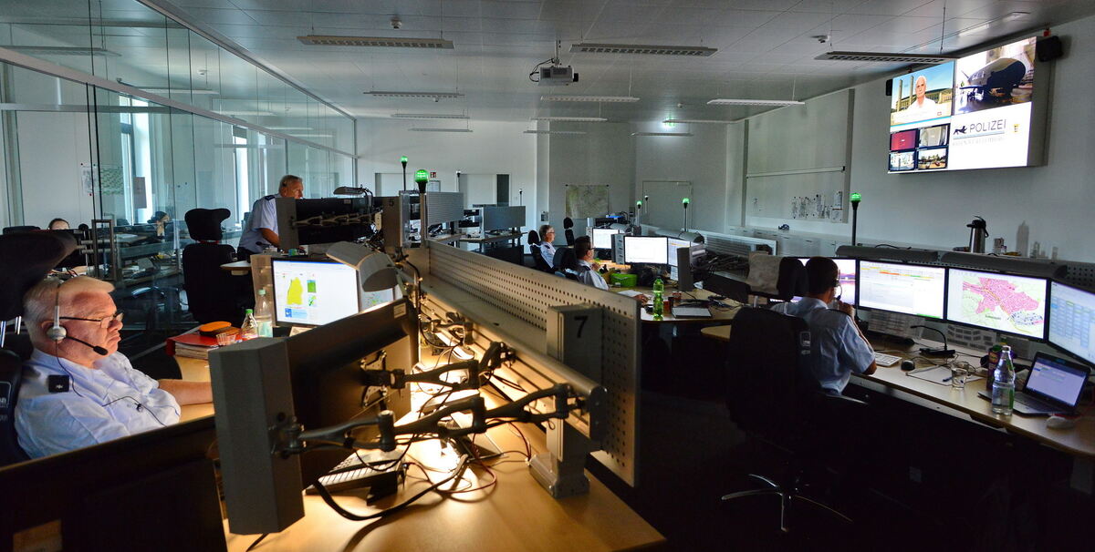 Herzstück des Erweiterungsbaus: das Führungs- und Lagezentrum mit der Notrufzentrale des Polizeipräsidiums.
