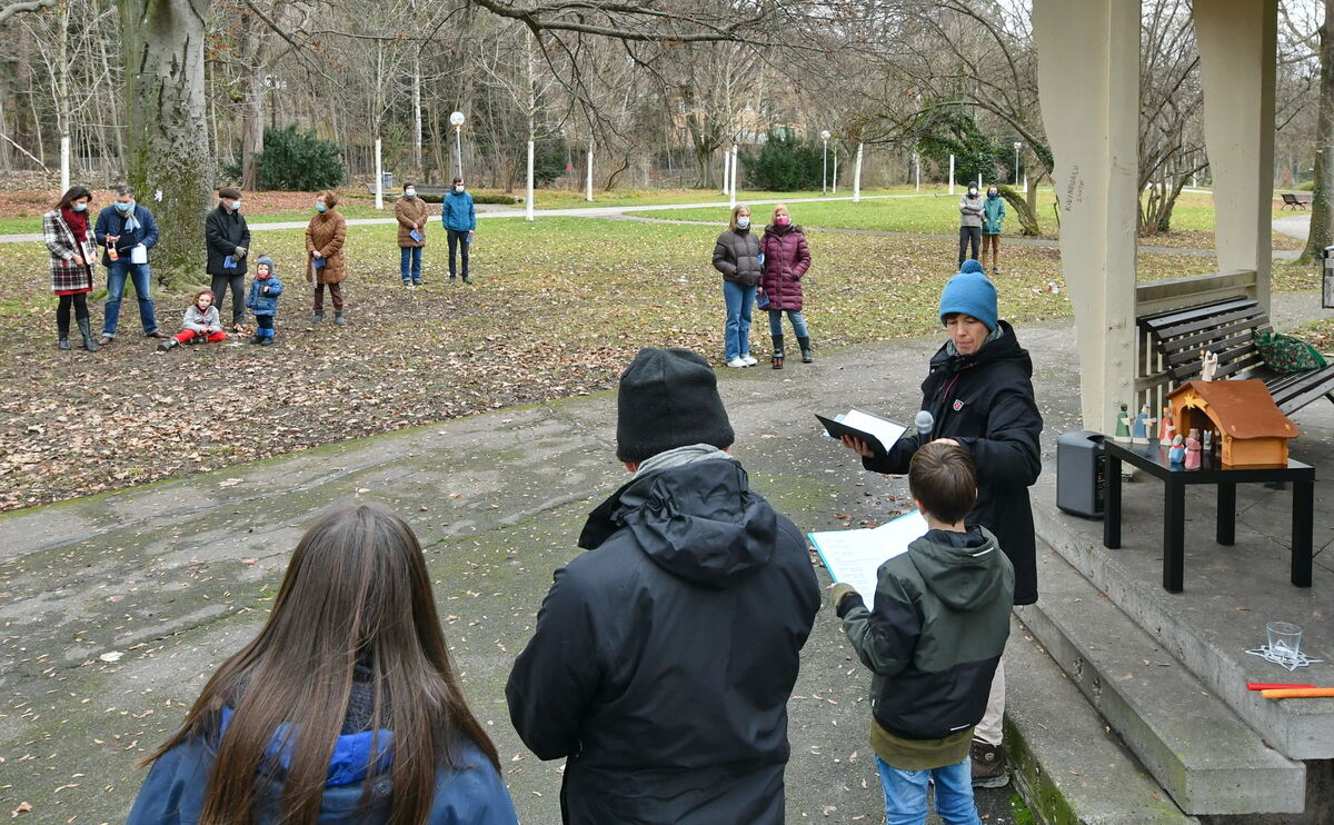 Weihnachtsgottesdienst im Stadtgarten mit Pfarrerin Christiane Braess und ihrer Familie. FOTO: MEYER