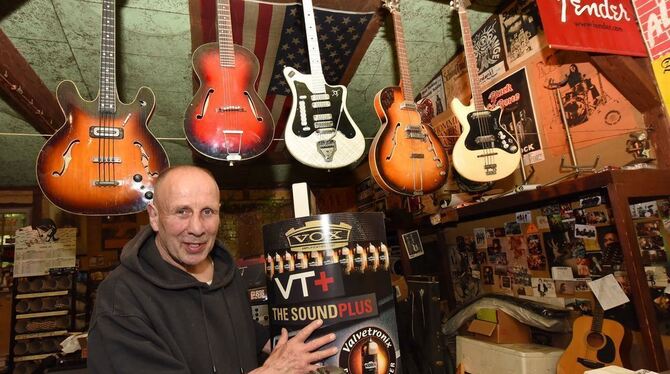 Max Herfert in seinem Musikladen, in dem es heute fast noch so aussieht wie vor 40 Jahren.