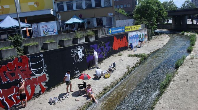 Buntes Spektakel am Reutlinger Echazufer unterhalb der Paketpost.