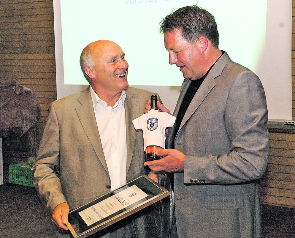 Der neue TSG-Vorsitzende Thomas Bader (rechts) dankt seinem Vorgänger Dr. Heiner Völker für das langjährige Engagement.