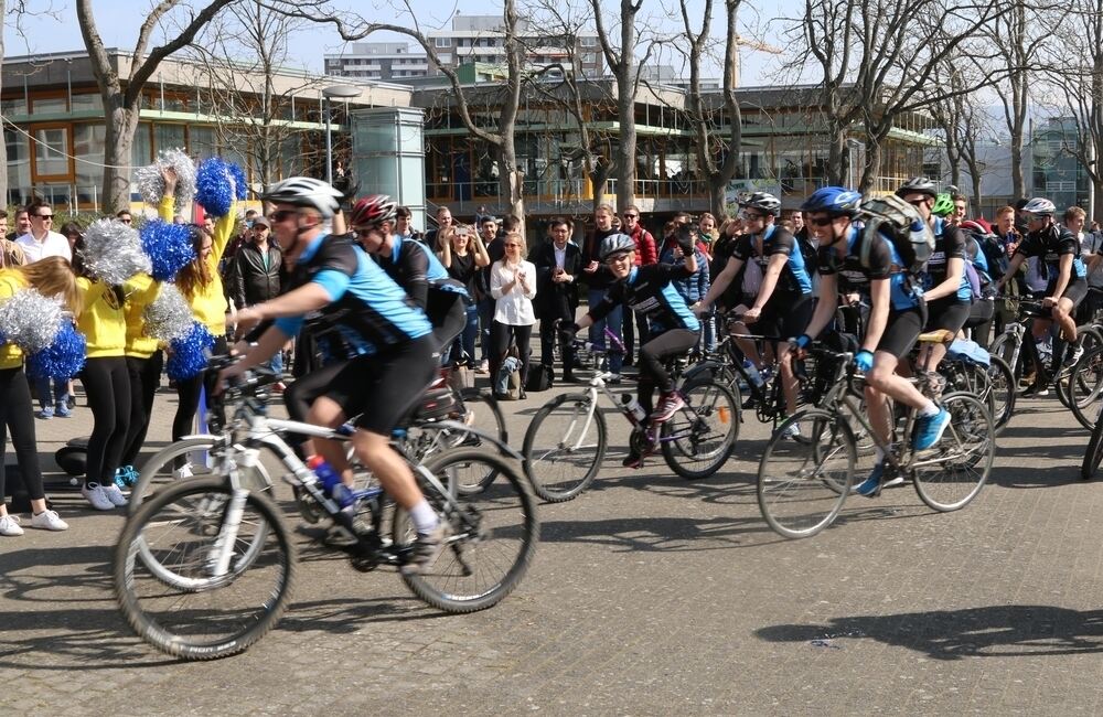 Auf die Sättel – fertig – los: Die ESB-Radler bei ihrem Start auf dem Hochschul-Campus (Archivbild). FOTO: PR