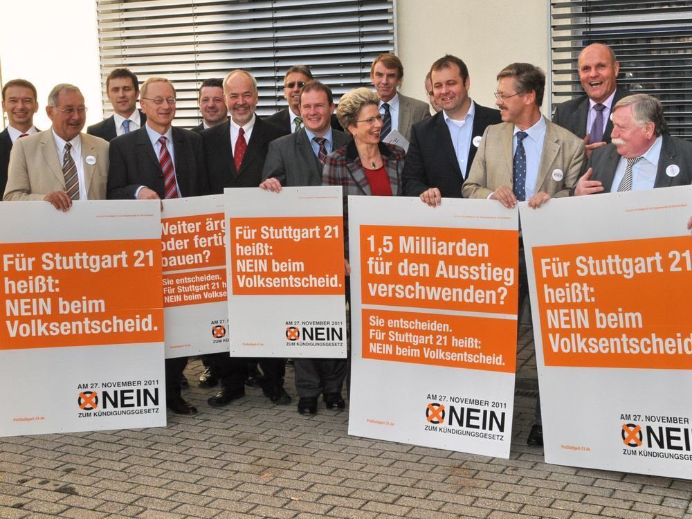 Werbeaktion kurz vor der Volksabstimmung im November 2011: Das Archivfoto zeigt gut gelaunte S-21-Befürworter aus der Region. Mittendrin Oberbürgermeisterin Barbara Bosch.