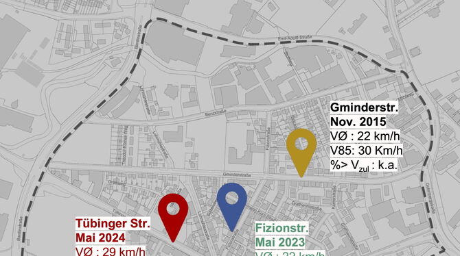 Die Tübinger Straße ist nicht nur gut frequentiert, hier wird auch gerne schneller als die erlaubten 30 Stundenkilometer gefahren.