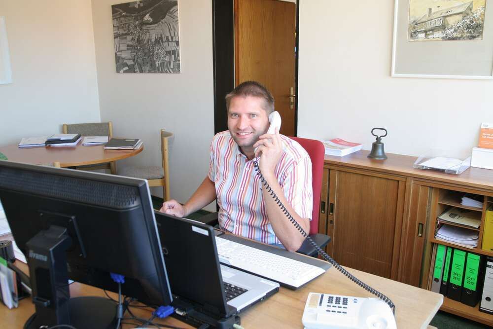 Frank Hofacker am Schreibtisch seines Amtszimmers im Altenburger Rathaus.