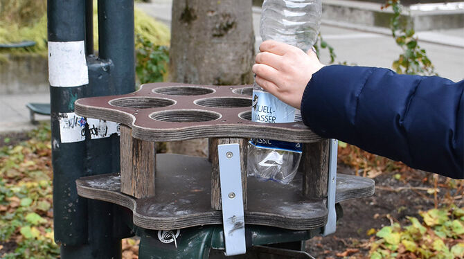 REUTLINGEN. In den Ring statt in den Eimer: Die Technischen Betriebsdienste Reutlingen (TBR) testen ab sofort Pfandringe an öffentlichen Abfallbehältern. In Pfandringen können leere Pfandflaschen und -dosen abgestellt werden.