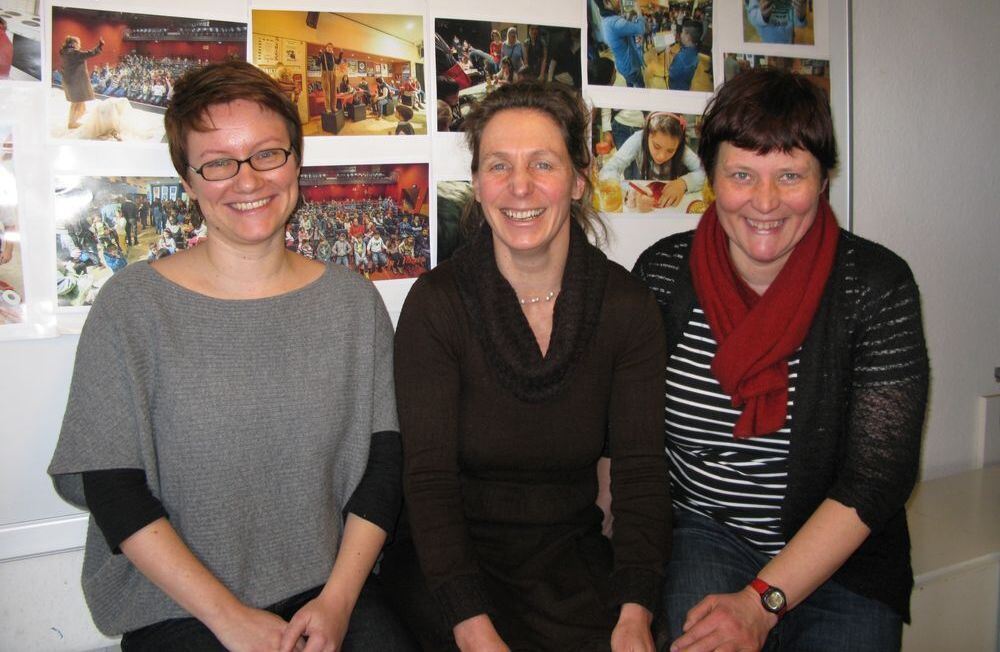 Katrin Sältzer (von links), Sonka Müller und Andrea Dohse helfen Flüchtlingskindern, in Deutschland anzukommen. FOTO: JULE