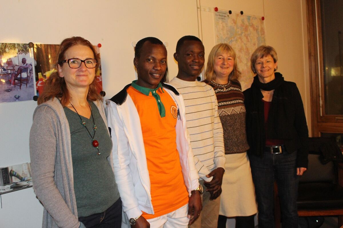 Ziehen im x-change-Projekt an einem Strang (von links): Sibylle Hahn (Diakonie Württemberg), die ivorischen Studenten Brahima »Ibi« Kologon, Adama Traore, Stadträtin Sabine Gross und Margit Fausel von der städtischen Abteilung für Städtepartnerschaften. FOTO: SPIESS