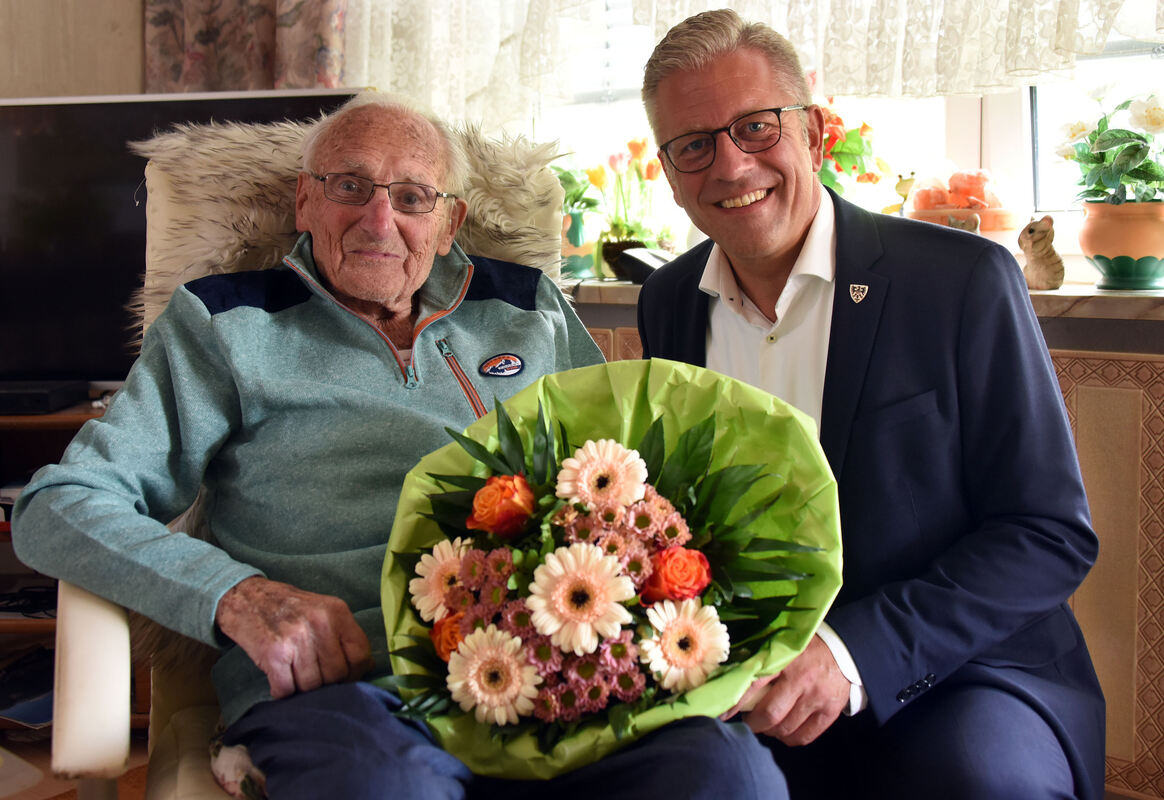 Siegfried Hartmann feierte am Montag seinen 100. Geburtstag. Reutlingens Finanz- und Wirtschaftsbürgermeister Roland Wintzen überbrachte Glückwünsche der Stadt und des Ministerpräsidenten.