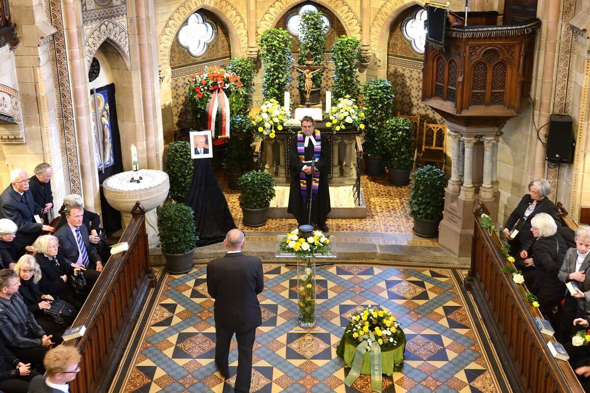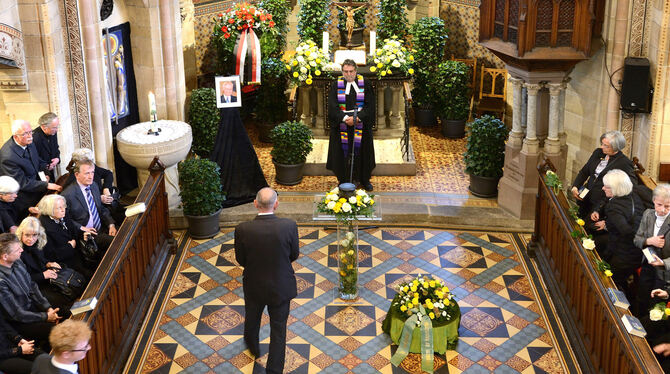 Trauerfeier für Klaus Kuntz mit Pfarrer Jörg Mutschler in der Katharinenkirche. FOTO: PIETH