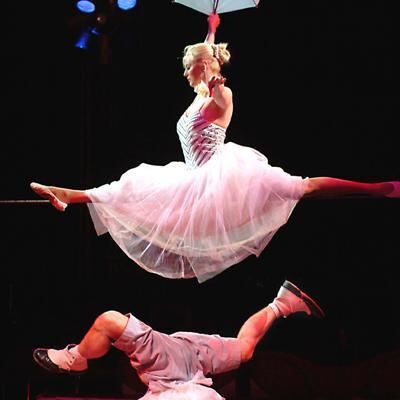 Ungewöhnliches Zusammentreffen: Schöne Helena und Clown Conc.
