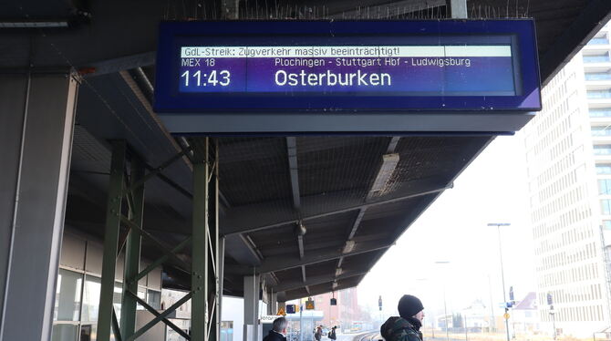 Obwohl im Nahverkehr rund um Reutlingen streikbedingt einige Züge ausfallen, kommen Bahnfahrer trotzdem zum gewünschten Ziel. Sie müssen nur vielleicht einen anderen Zug nehmen als gewohnt. Von 81 Fahrten, die zum Beispiel am Mittwoch, 10. Januar, von Reutlingen nach Tübingen führen sollten, sind 36 ausgefallen – das lässt sich der DB-App entnehmen. Dem Augenschein nach beeinträchtigt dies das Nutzerverhalten jedoch nur marginal. Manche Fahrgäste profitieren sogar von den Auswirkungen des Streiks. Frank Brettschneider, ein Pendler aus Stuttgart, ist einer dieser Nutznießer: »So pünktlich war ich noch nie in Reutlingen«, sagt er. (GEA)