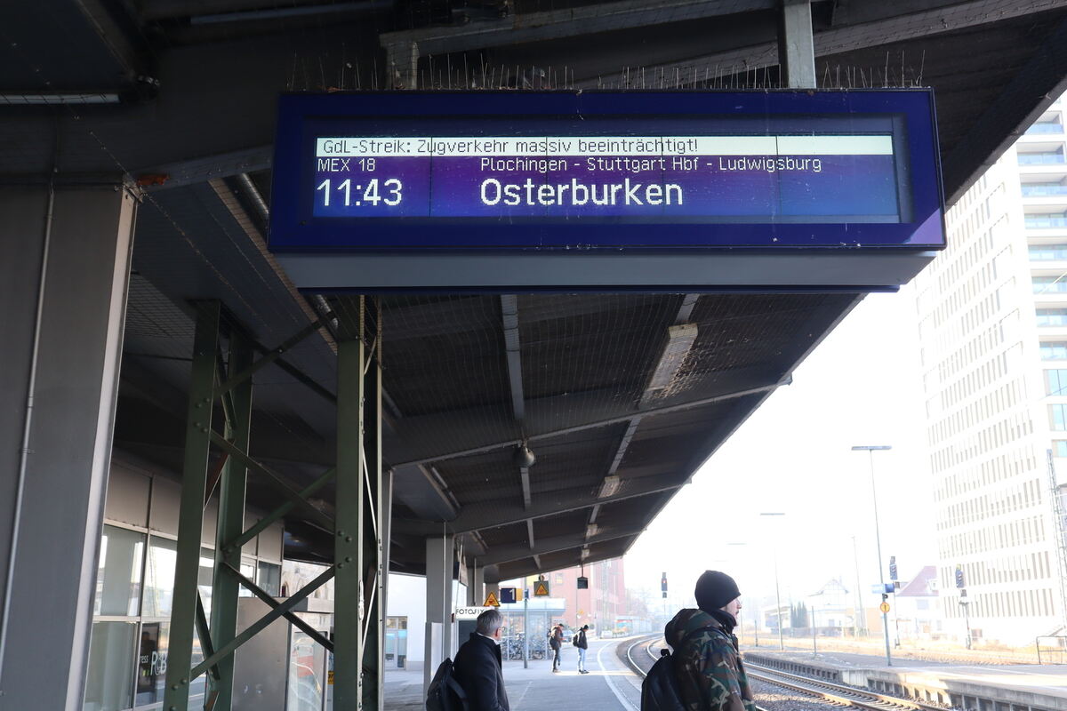 Bei den vorherigen Streiks war Fahrgästen geraten worden, aufs Zugfahren zu verzichten, was deutschlandweit für leere Bahnsteige gesorgt hatte. Und jetzt? Tut sich zumindest auf dem Reutlinger Hauptbahnhof durchaus etwas – entgegen der Erwartungen. Auf dem Bahnsteig sind zwar nicht allzu viele Leute zu sehen. Das dürfte jedoch weniger am Streik liegen, als vielmehr daran, dass es Minusgrade hat: Die Gäste tummeln sich nämlich in der warmen Vorhalle des Bahnhofes.