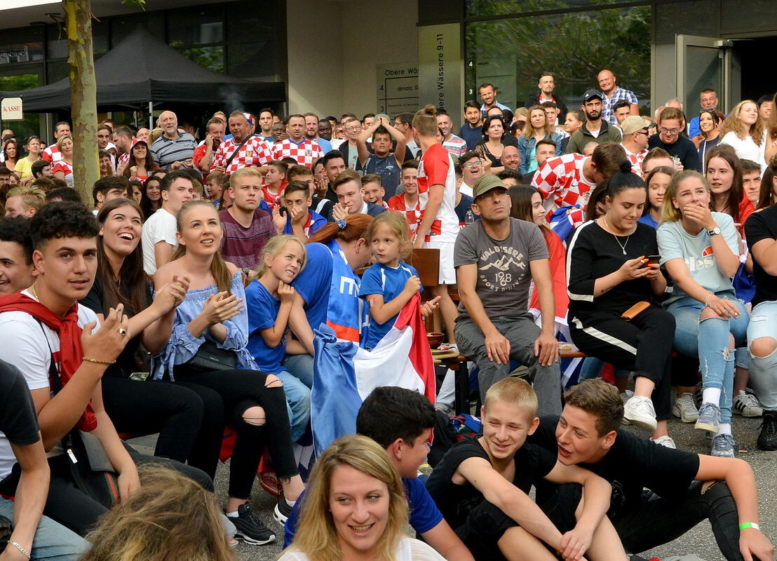 Die Gelben Karten für die Franzosen wurden von den kroatischen Fans im Vergleich dazu deutlich lauter gefeiert. Und erst der 1:1-Ausgleich durch Ivan Perisic: Da fiel direkt die erste Bierbank um, es wurde auf den Tischen getanzt und gefeiert als wäre man schon Weltmeister. Am Ende hat es nicht gereicht. Doch im Feiern hätten die Kroaten den Titel verdient gehabt. (GEA)