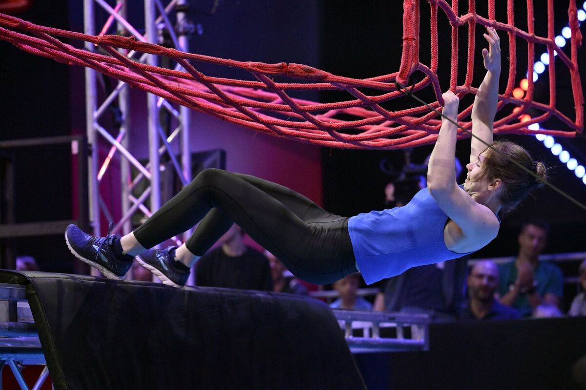 Schon vor ihrem Start hatte Alisah Kammer ein Lächeln auf den Lippen »Das ist grundsätzlich eine gute Voraussetzung«, kommentierte Köppen. Die Kandidatin übersprang zwei pfeilförmige Plattformen souverän. Am zweiten Hindernis – ein riskanter Sprung vom Trapez an ein gepolstertes Pendel – sahen die Kommentatoren die 20-Jährige schon ins Wasser fallen. Sie bekam das Pendel weit unten zu greifen und drohte abzurutschen. »Oh, oh«, entfuhr es den Kommentatoren. Doch die erfahrene Kletterin bewies Stärke, zog sich nach oben, und brachte Köppen, Buschmann sowie ihre am Rande des Parcours mitfiebernden Eltern zum Jubeln. »Das war die riskanteste Variante, die man für dieses Hindernis wählen kann«, stellte Köppen fest und lobte Alisah Kammers Willenskraft. »Sie macht es gut bis hierhin, aber auch spannend. Man merkt ihr die nicht vorhandene Erfahrung an.«